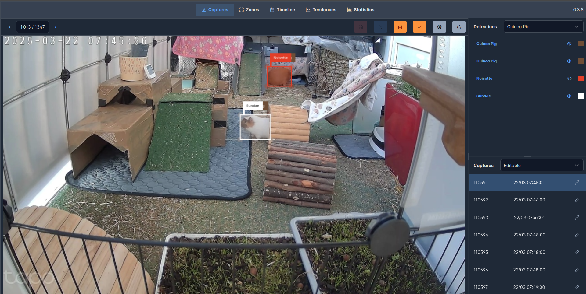 - Produire un large dataset d’image annotées (93 000 à l’heure actuelle, entre 600 et 800 captures par jours)